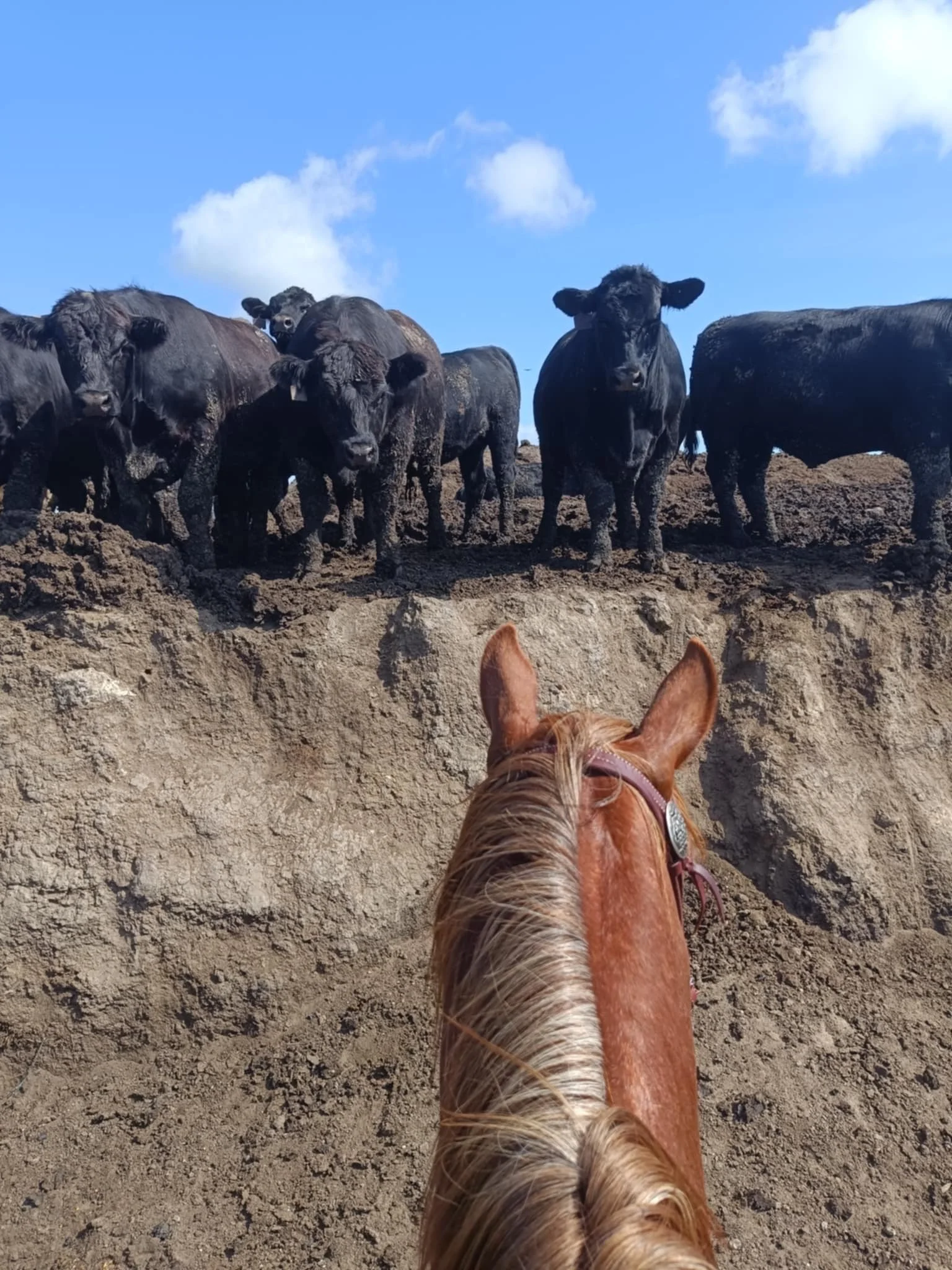 This 2 Eyed Jack grandson has been used on the ranch trailing cattle and hazing when needed. He has a nice motor on him and real nice movement off the leg. Currently being ridden in both a snaffle and a hackamore. He lacks confidence in holding live cattle as his experience level is still new. By the end of this season he will be over that. Real nice one to ride, covers good ground. Real easy to get along with and will meet you at the gate for a day of work. No vices, no funny business. Can be ridden bareback and bridleless and still perform nice stops and spins. Sorrel with that nice Rabicano flecking in the flank.